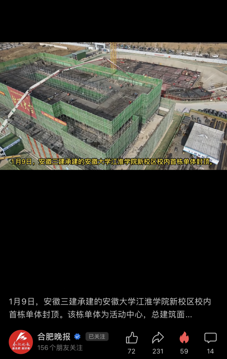 媒體聚焦丨合肥晚報視頻號、江淮晨報報道公司承建的安徽大學(xué)江淮學(xué)院新校區(qū)項目最新進展
