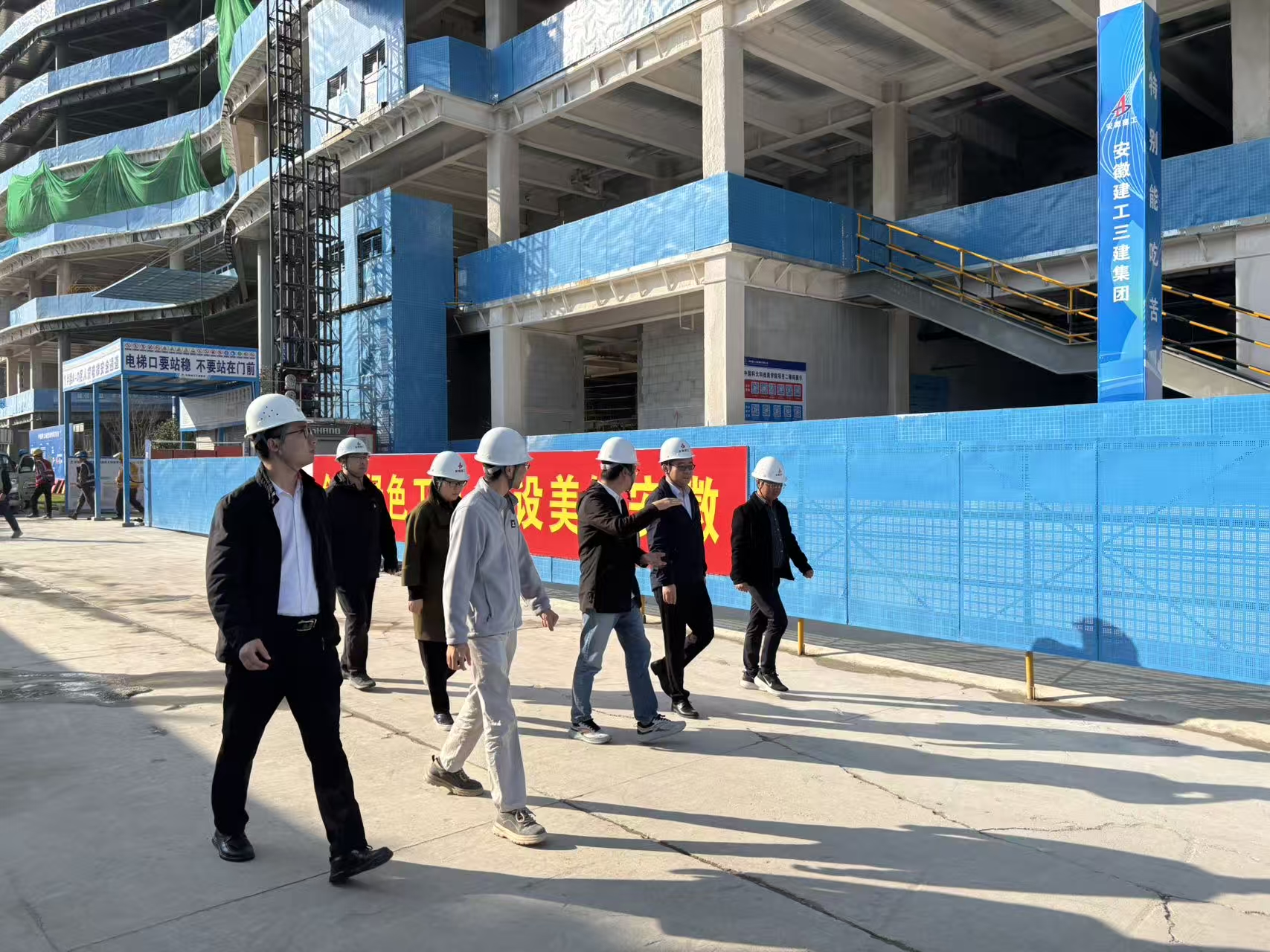 10月22日,合肥市濱湖新區建設投資有限公司與建工三建第一建筑公司在中科大商學院項目現場聯合開展"清廉項目"聯創共建活動。合肥濱湖科學城紀檢監察工委四級調研員陳升,合肥市濱投公司紀檢監察室主任聶聆,第一建筑公司副總經理童朝堂等參加活動。